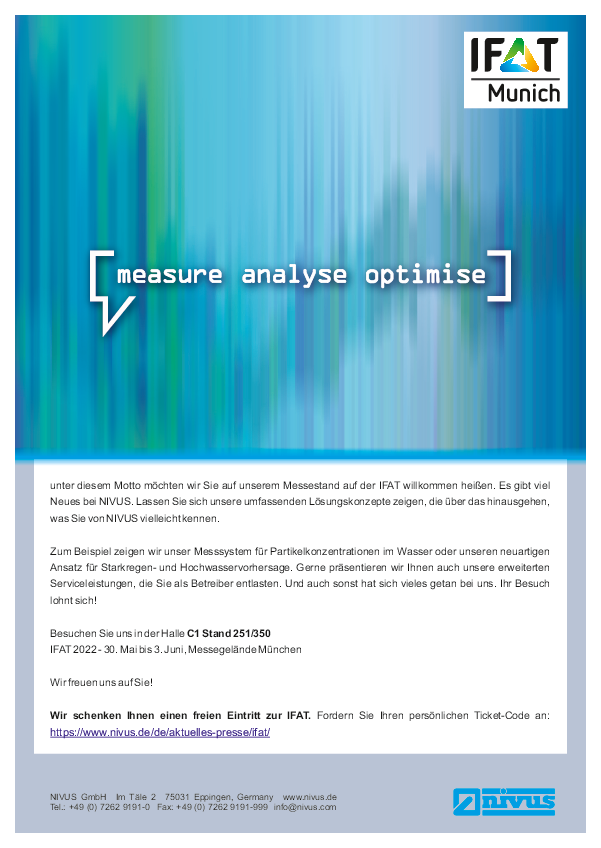 „measure analyse optimise“ - unter diesem Motto möchten wir Sie auf unserem Messestand auf der IFAT willkommen heißen.